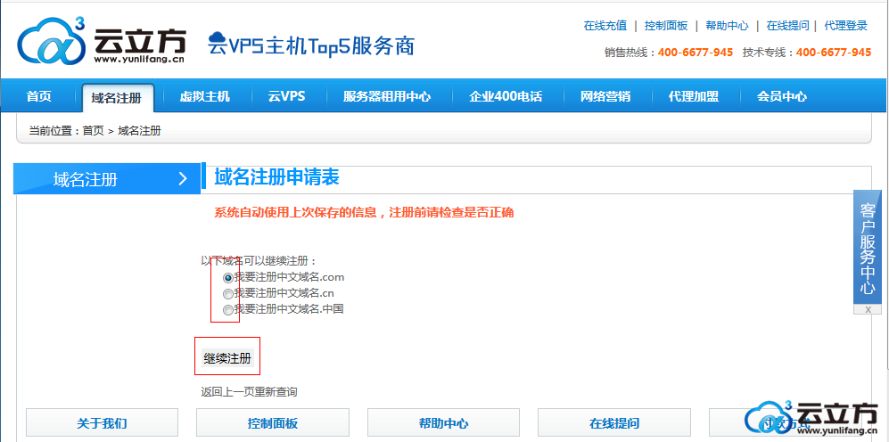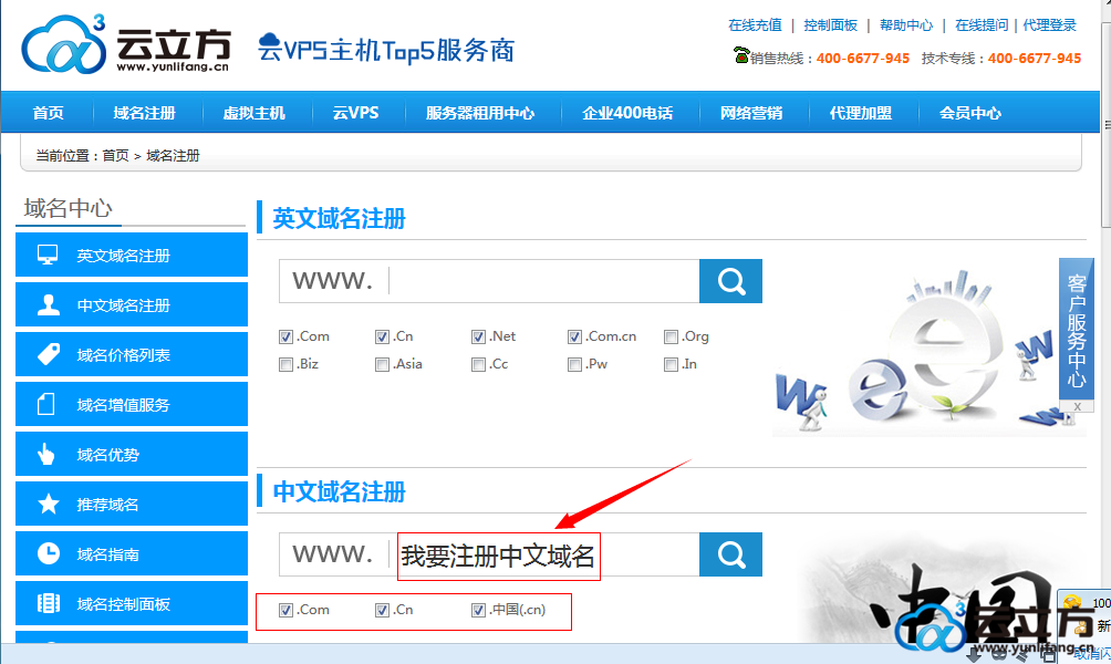 云立方网帮助中心 >> 域名注册问题 >> 云立方网教你注册中文域名