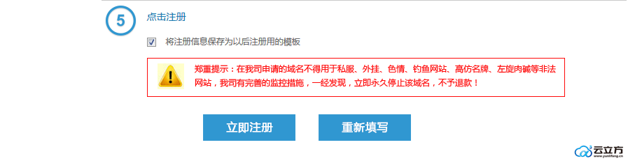 我们填写好域名信息后,点击下面的“立即注册”按钮,看看效果: